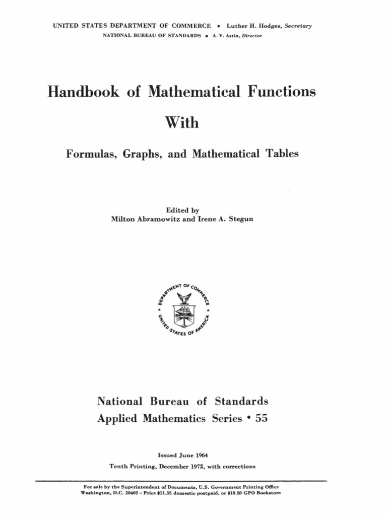 Handbook Of Mathematical Functions With Formulas M 1 Abramowitz I A Stegun Pdf Interpolation Physics Mathematics