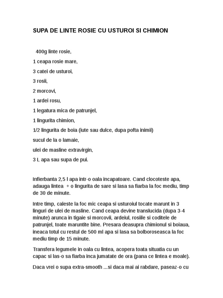 Supa De Linte Rosie Cu Usturoi Si Chimion