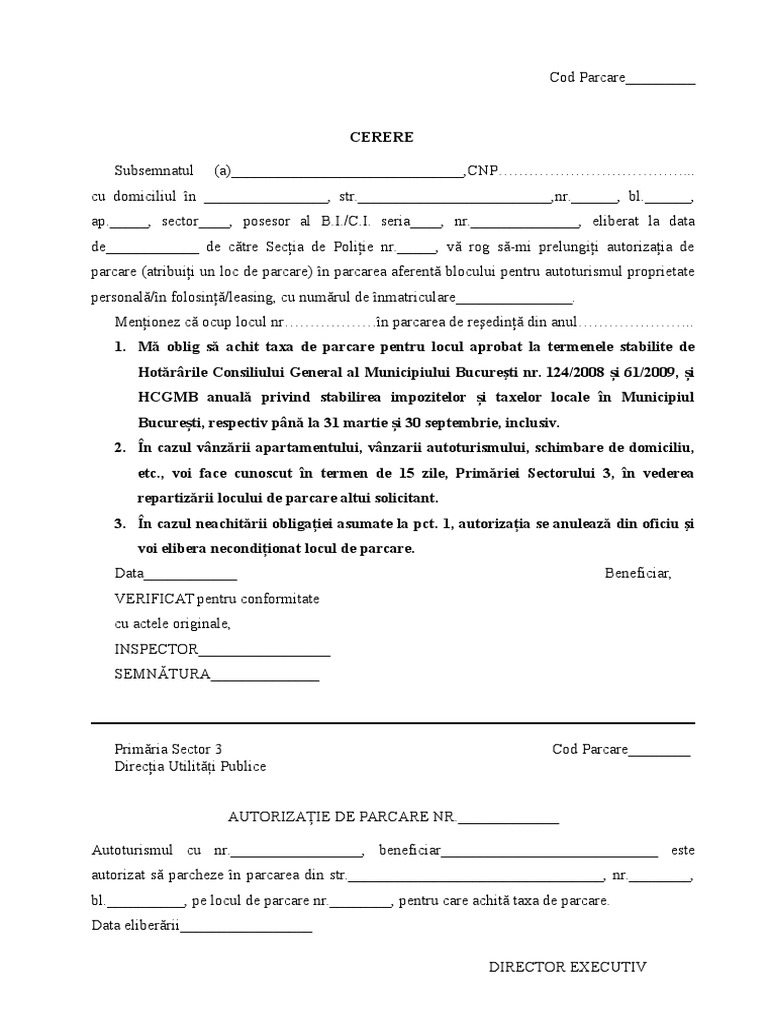 Cerere Loc De Parcare