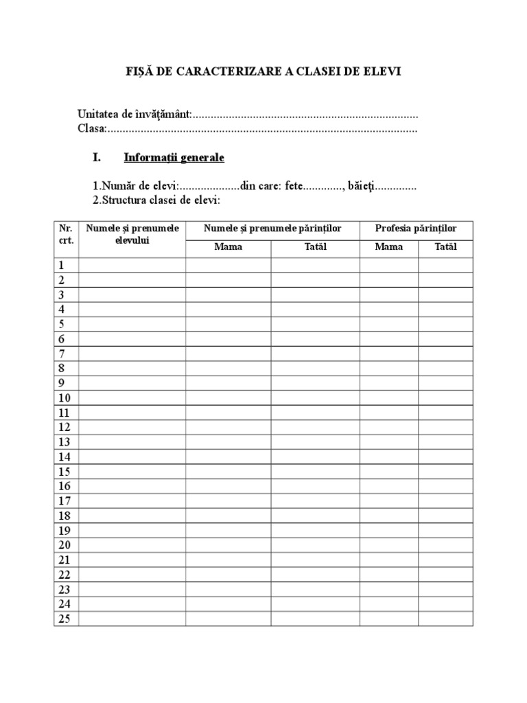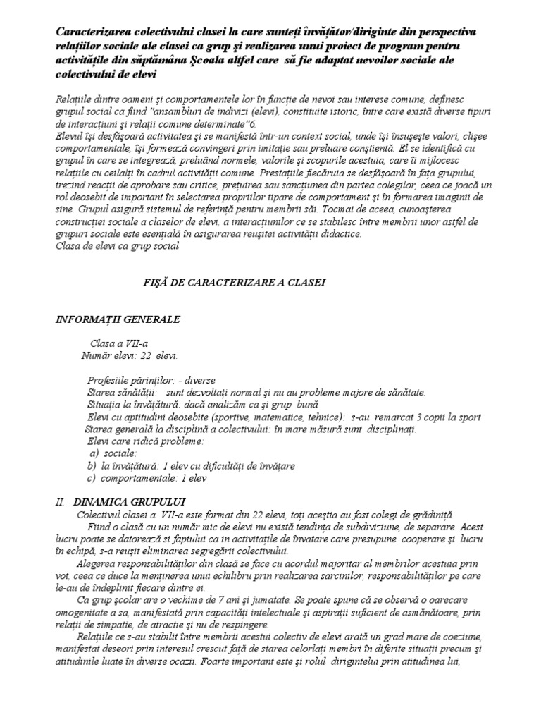 Doc Fisă De Caracterizare A Clasei Informaţii Generale Adela Calmatui Academia Edu