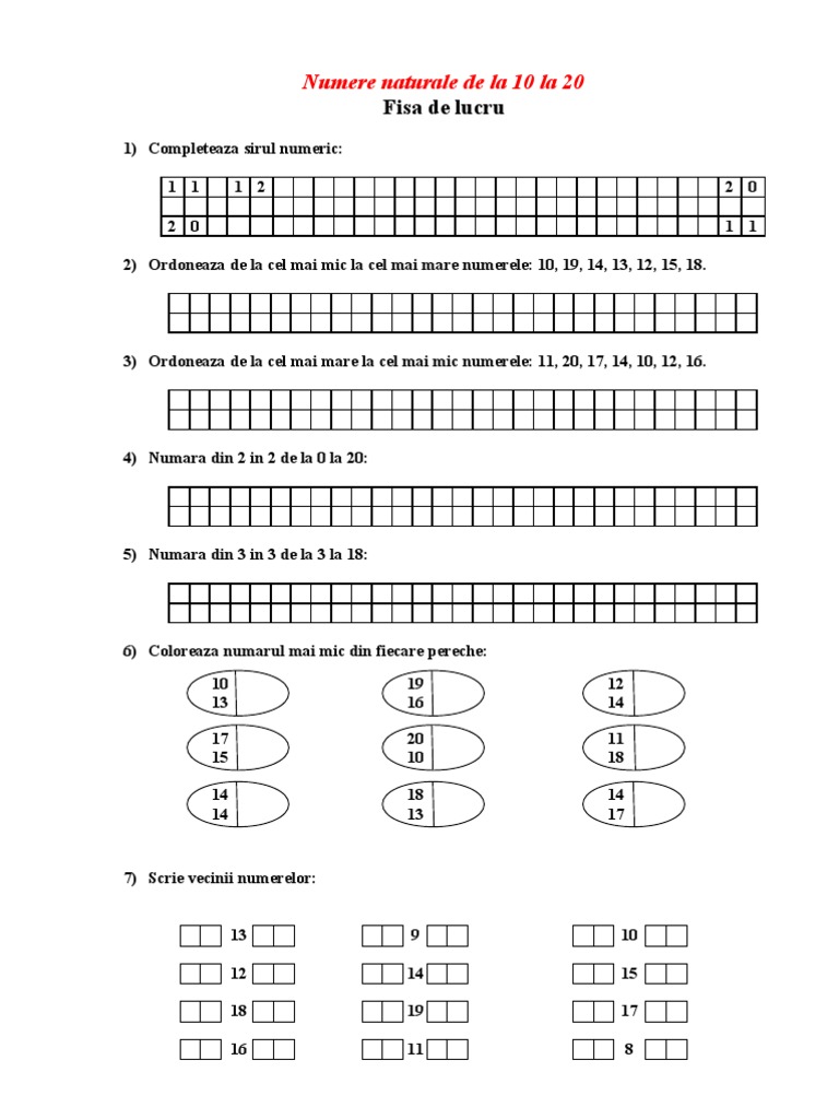 13 Fise De Lucru Numere Mai Mari Mici Cu 1 2 3 10 Modele Necompletate Catalina Birsan
