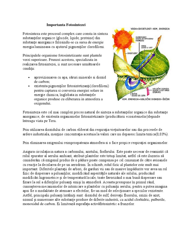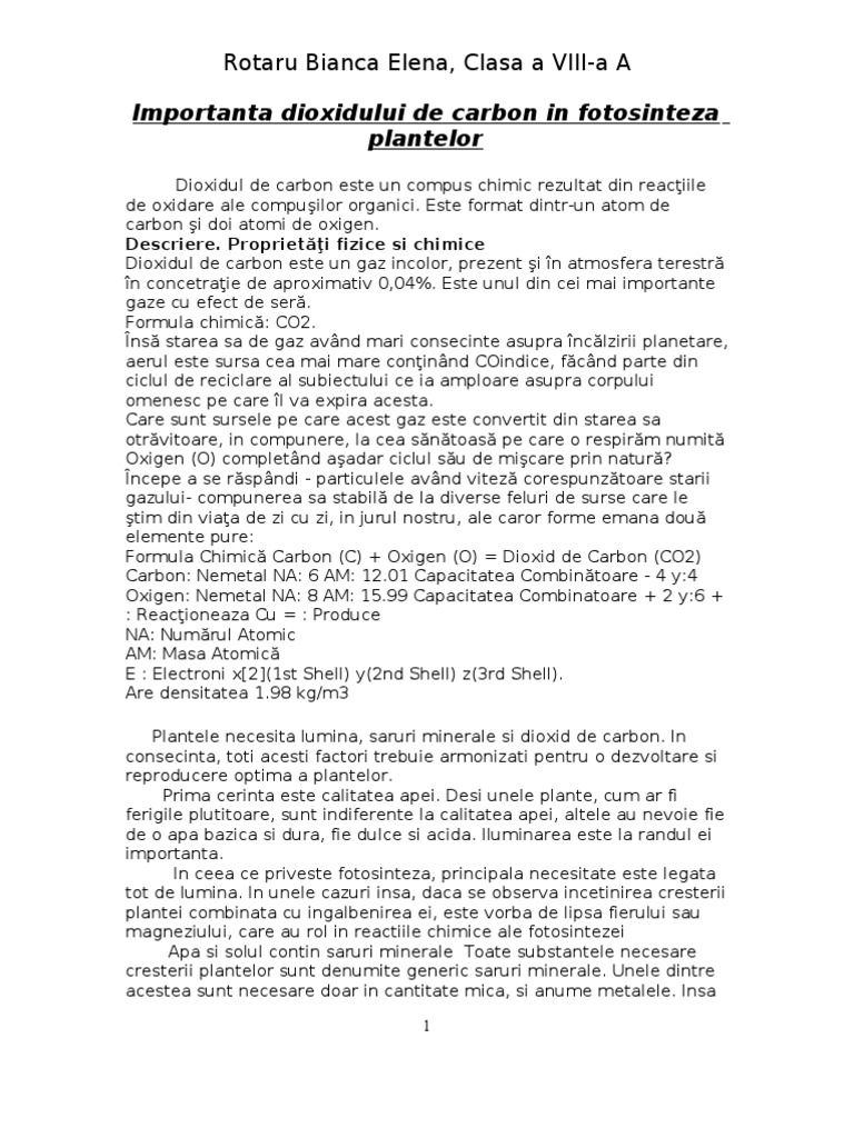 Referat Importanta Co2 In Fotosinteza Plantelor 334801 Graduo