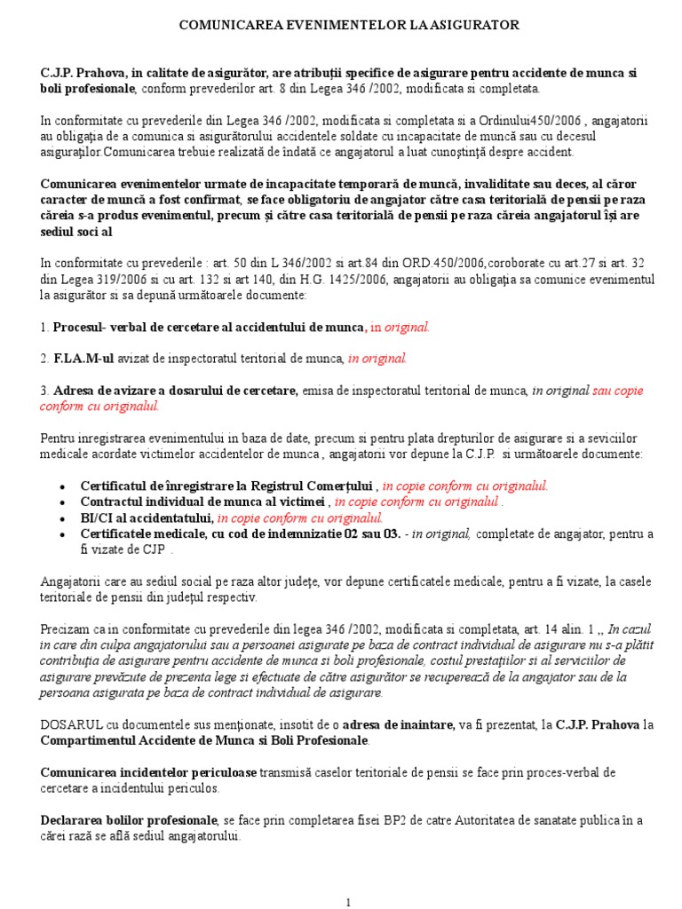 Lege 346 2002 Asigurare Accidente De Munca Si Boli Profesionale