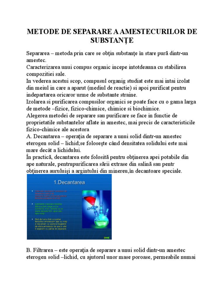 Metode De Separare A Amestecurilor