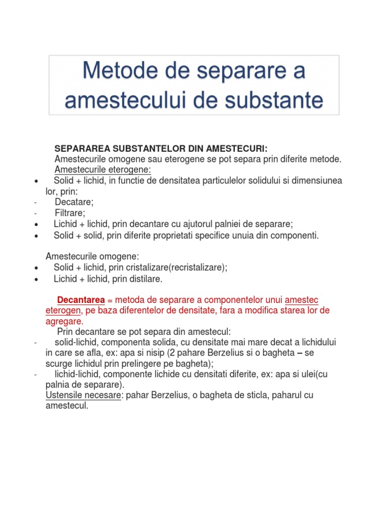 1 Metode De Separare A Amestecului De Substante