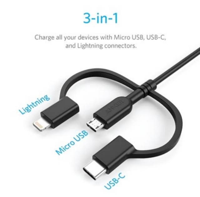 Cable Anker 3 In 1 Usb 3 In 1 Kabel 3 In 1 Anker Shopee Indonesia