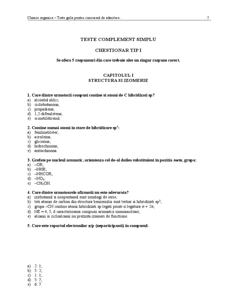 Pdf Teste Admitere Chimie Organica Farmacie 2015 Bis Andreea Stancu Academia Edu
