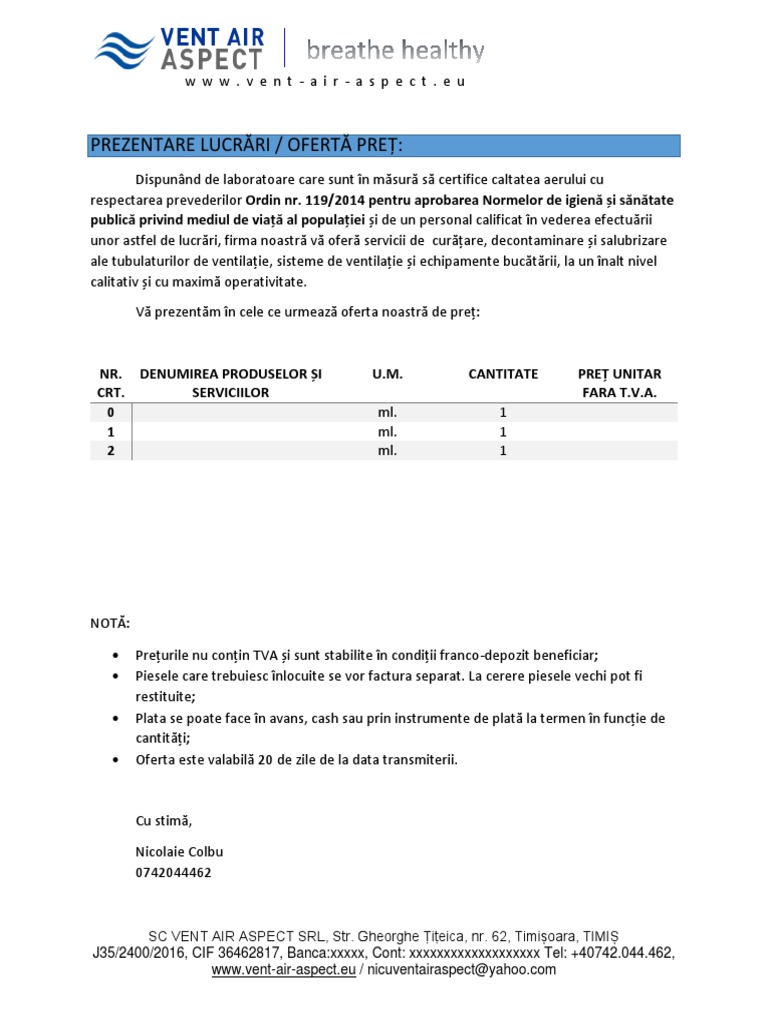 Prezentare Model Oferta De Pret