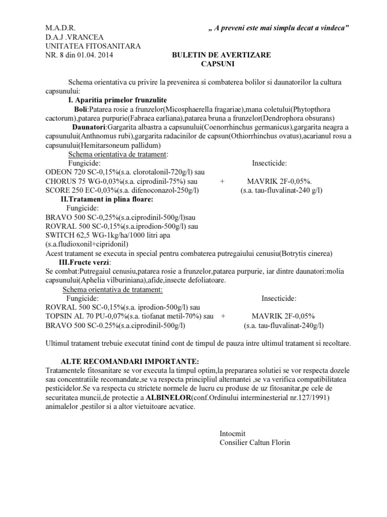 Capsun Calendarul Tratamentelor Informatii Si Produse