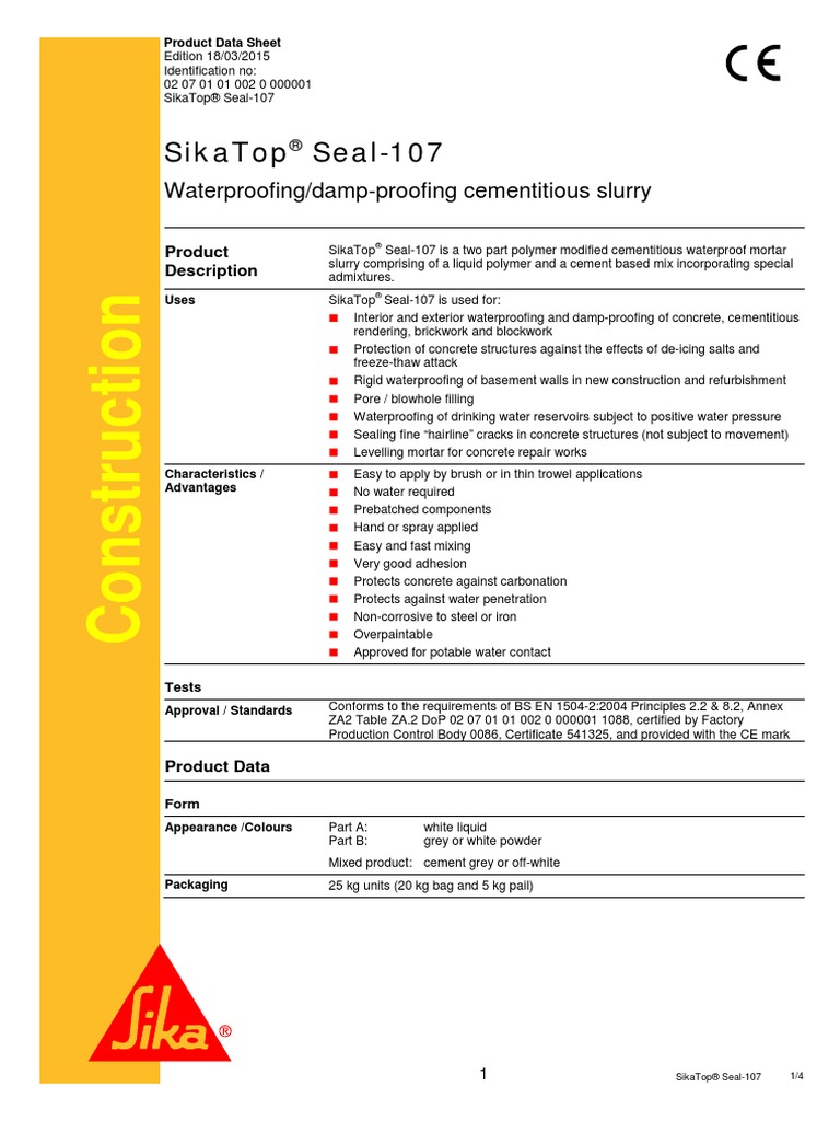 Sikatop Seal 107 Pds Ce Pdf Concrete Mortar Masonry