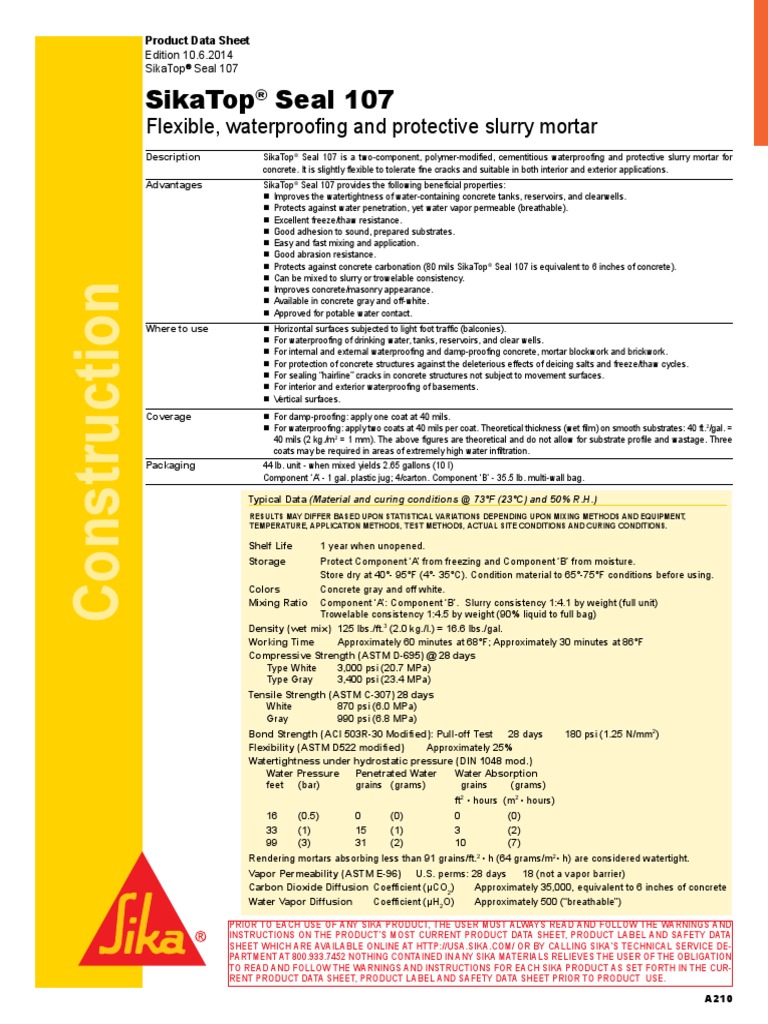 Sikatop Seal 107 2011 10 1 Concrete Mortar Masonry