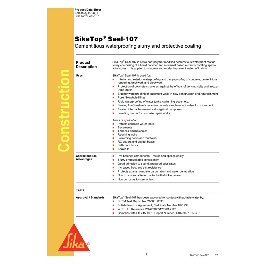 Sikatop Seal 107 Cementitious Waterproofing Slurry Protective Coating 20kg 4kg Shopee Malaysia