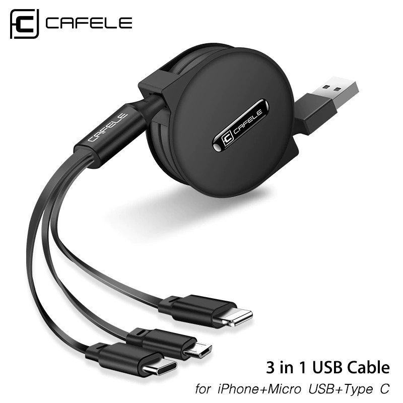 Branded Cafele 3 In 1 Retractable Usb Cable For Iphone Micro Usb Type C Flat Cable Fast Charging Shopee Indonesia