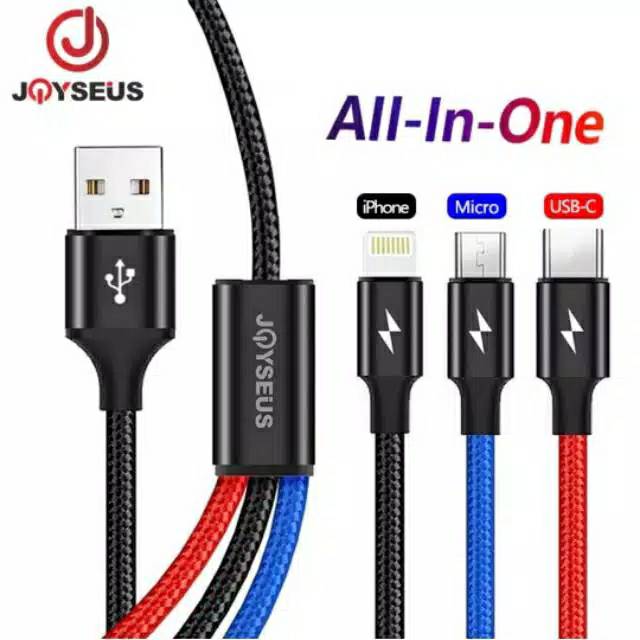 Joyseus 3 In 1 Charger Cable Micro Usb Type C Iphone Lightning Jc13 Kabel Shopee Indonesia